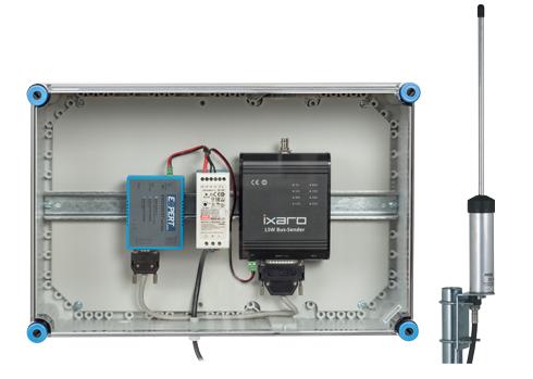 Der Ixaro L5W Bus-Sender ist mit 1-5 Watt regelbarer Leistung und TCP/IP Steuerung die optimale und günstigste Lösung für größere Lager, die mit den gebührenfreien IXARO-Standard-Sendern nicht optimal mit Funk versorgt werden können.
