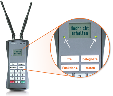 Mit unserem 10 mW starken L10 Bus- oder Net-Sender versorgen Sie Reichweiten bis 1.000 m. Für größere Lager steht der 500 mW starke P500 zur Verfügung mit einer max. Reichweite von 3.000 m.